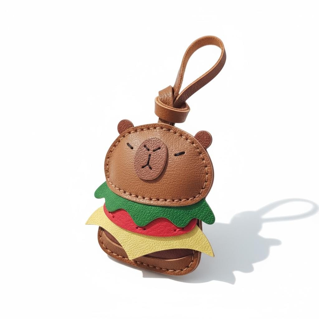A premium SUPER adorable Capybara Burger Bag Charm/Accessory/Tag